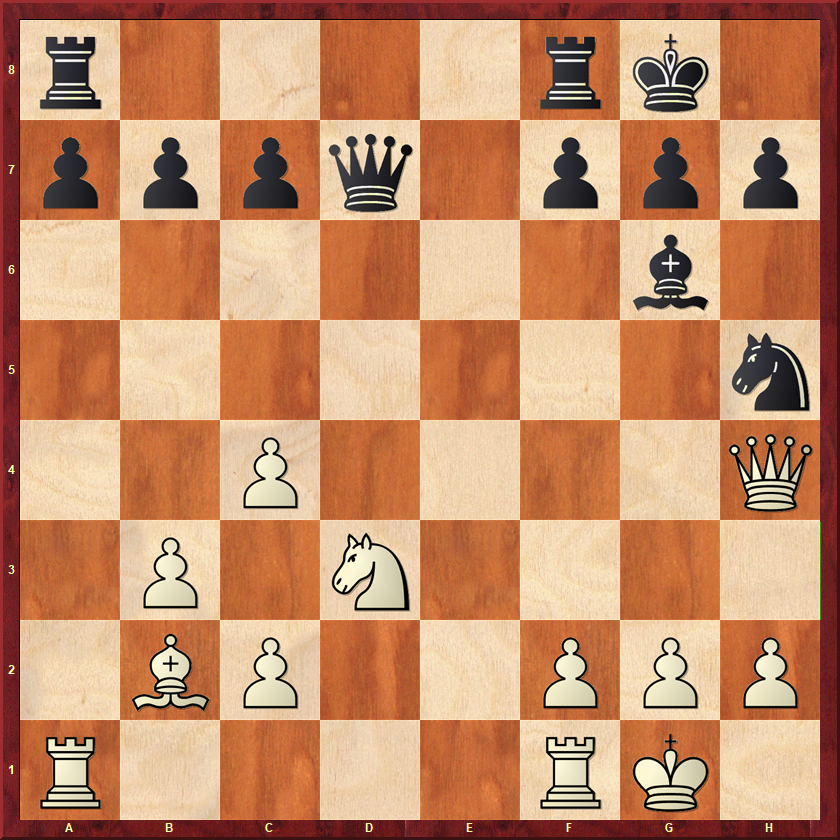 18.Pd5? was een slag in de lucht na 18…Df7. Wit vervolgde met het matige 19.Pf4?! g5 20.Pxh5 Dxh5 21.f4 Pf3+ 22.Kh1? fxe4 23.Dc4+ Kh8 24.Dxe4 Lxh3 en zwart won. Beter was 18.f4!? Pf7 19.e5!, met het idee de g-pion te offeren. Na 19…Pxg3 is 20.Pd5 wel goed, omdat de dame dan niet meer naar f7 kan.